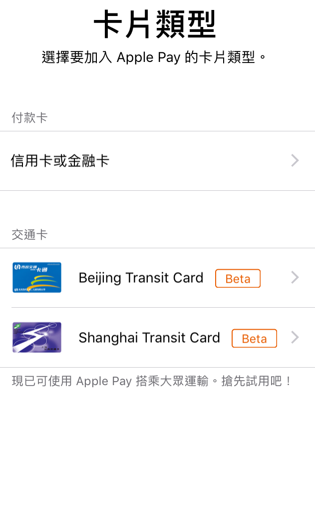 正式注册“方便交通卡”功用,借助于Apple Pay,用户能够在北京的地铁和公交顶用iPhone或Apple Watch来进站出站,在上海还额定支撑轮渡和磁浮列车。